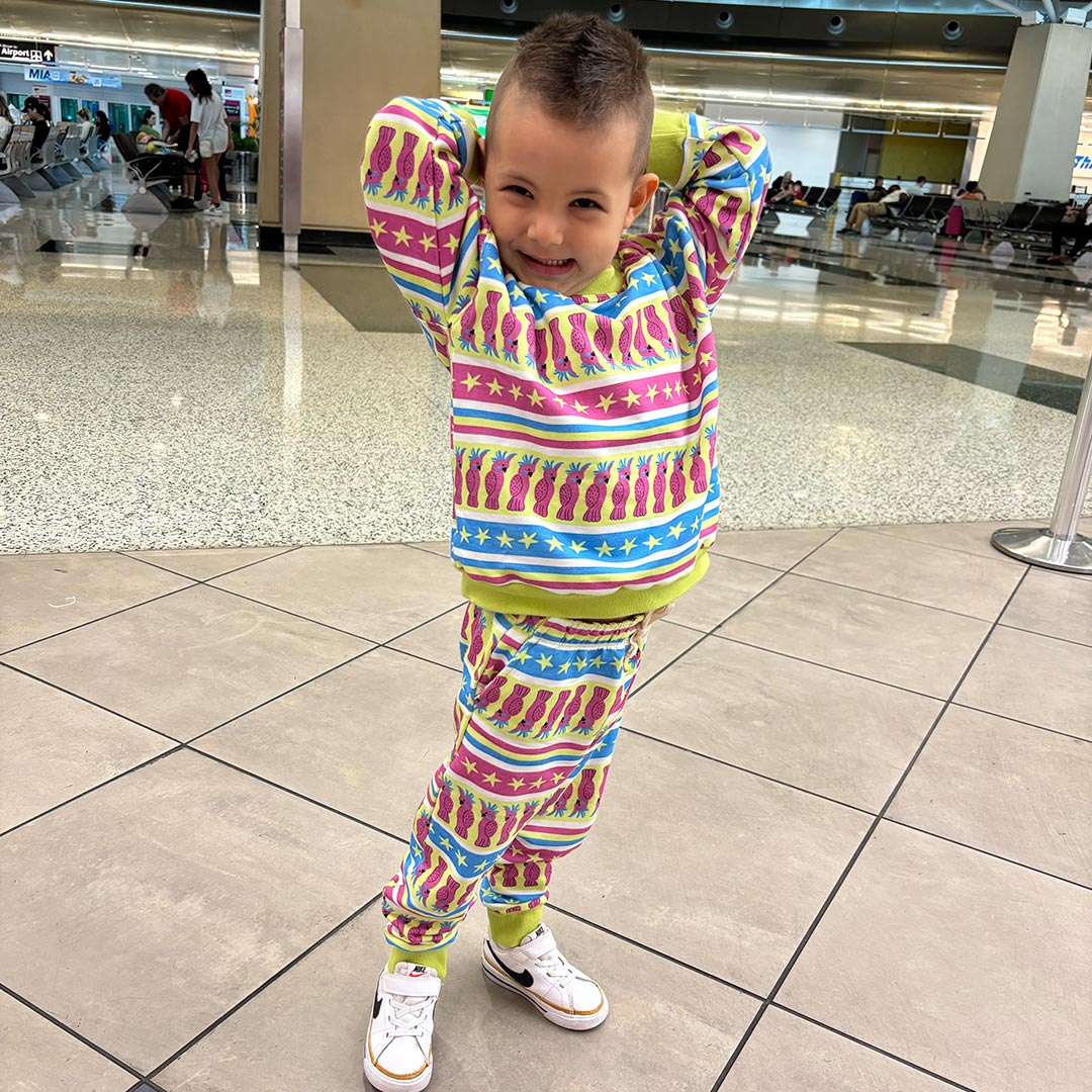 Pijama para niños y niñas en algodón peruano estampado rayos