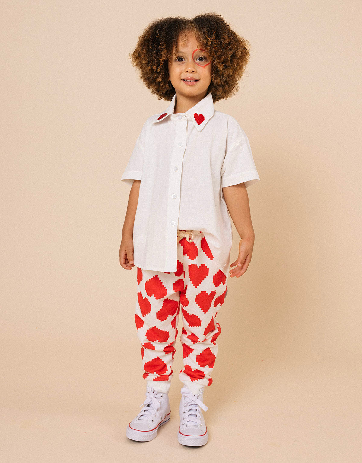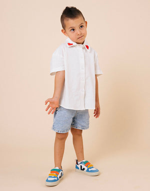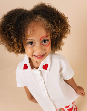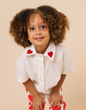 Camisa para niñas y niños en algodón - Bordado corazones