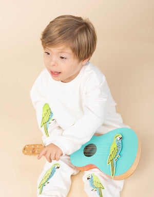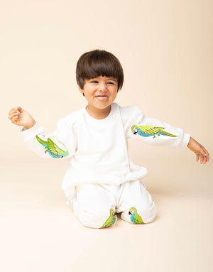 Conjunto unisex para bebés y niños en algodón peruano loros verdes