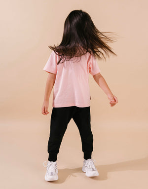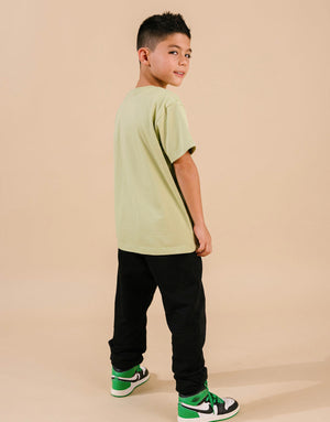 Su cintura con resorte se adapta fácilmente a diferentes tipos de cuerpo, brindando un ajuste seguro sin incomodidades. Además, el fit ajustado en los tobillos ofrece mayor libertad de movimiento y un estilo moderno que combina con todo. Gracias a su diseño unisex, este jogger se convierte en una pieza versátil que no puede faltar en el clóset infantil.